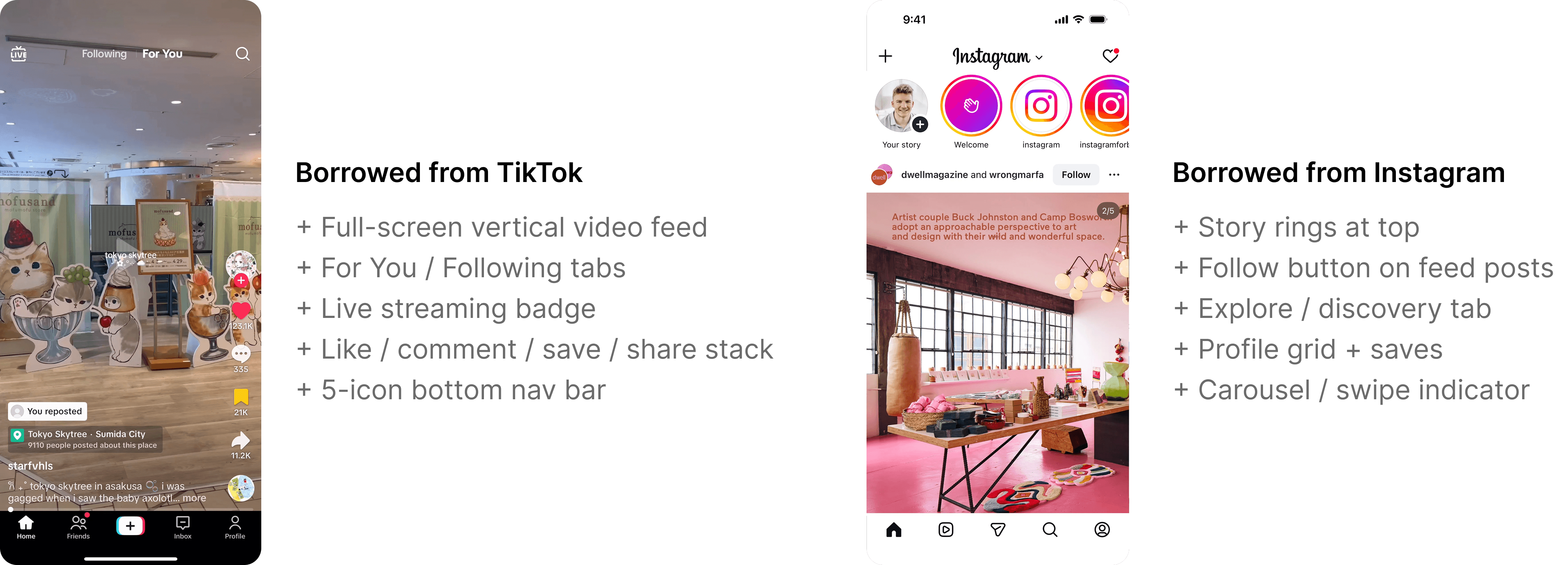 Linga was intentionally built on patterns users already know from TikTok and Instagram — lowering the barrier to adoption while layering in AI translation as a natural extension, not a disruptive new feature.