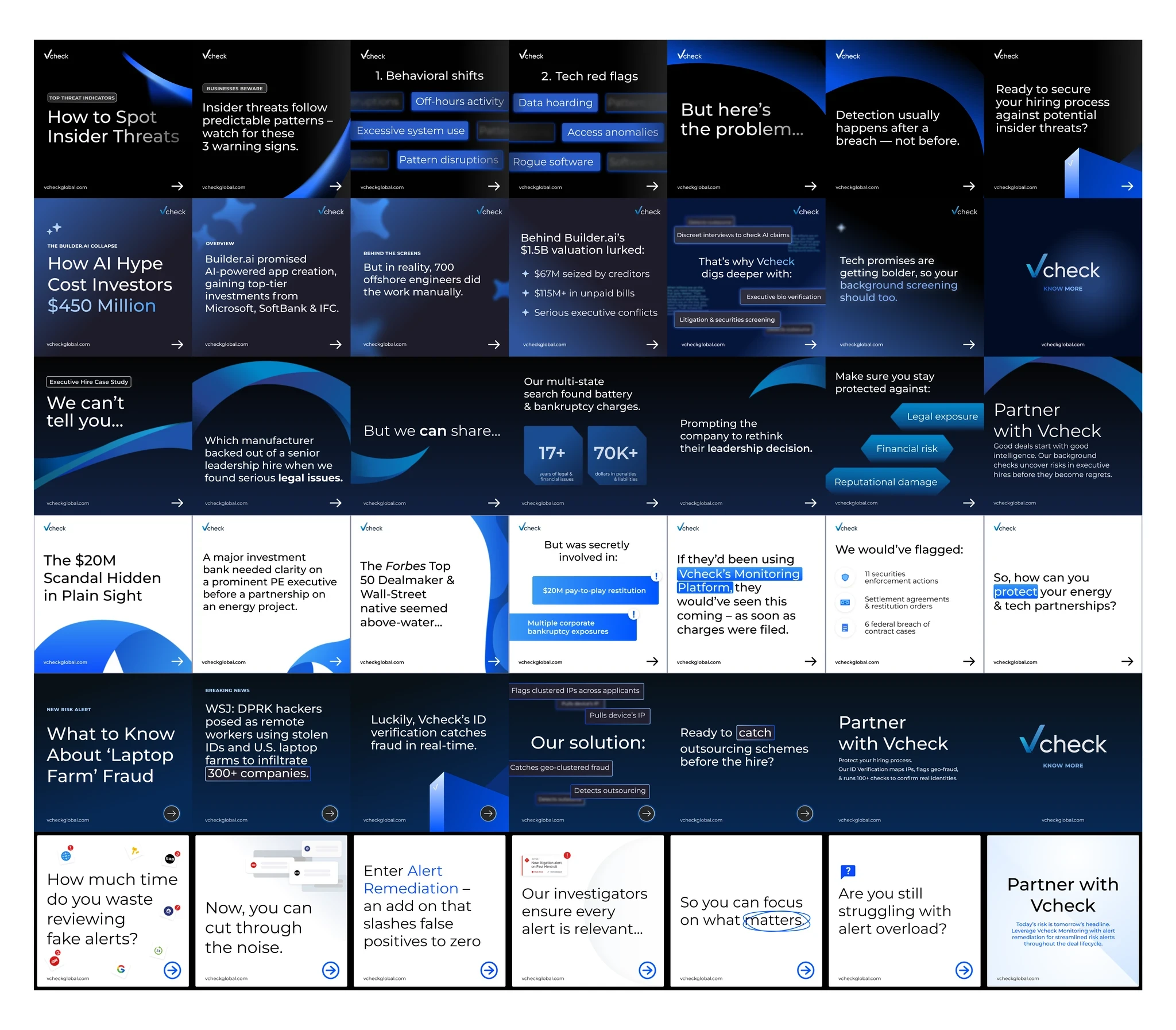 I led the redesign of Vcheck’s homepage alongside the launch of interactive reports and updated product assets. The goal was to clearly highlight Vcheck’s core product offerings, which the previous site did not communicate, and to position the brand as a modern SaaS company through a clean and structured layout.