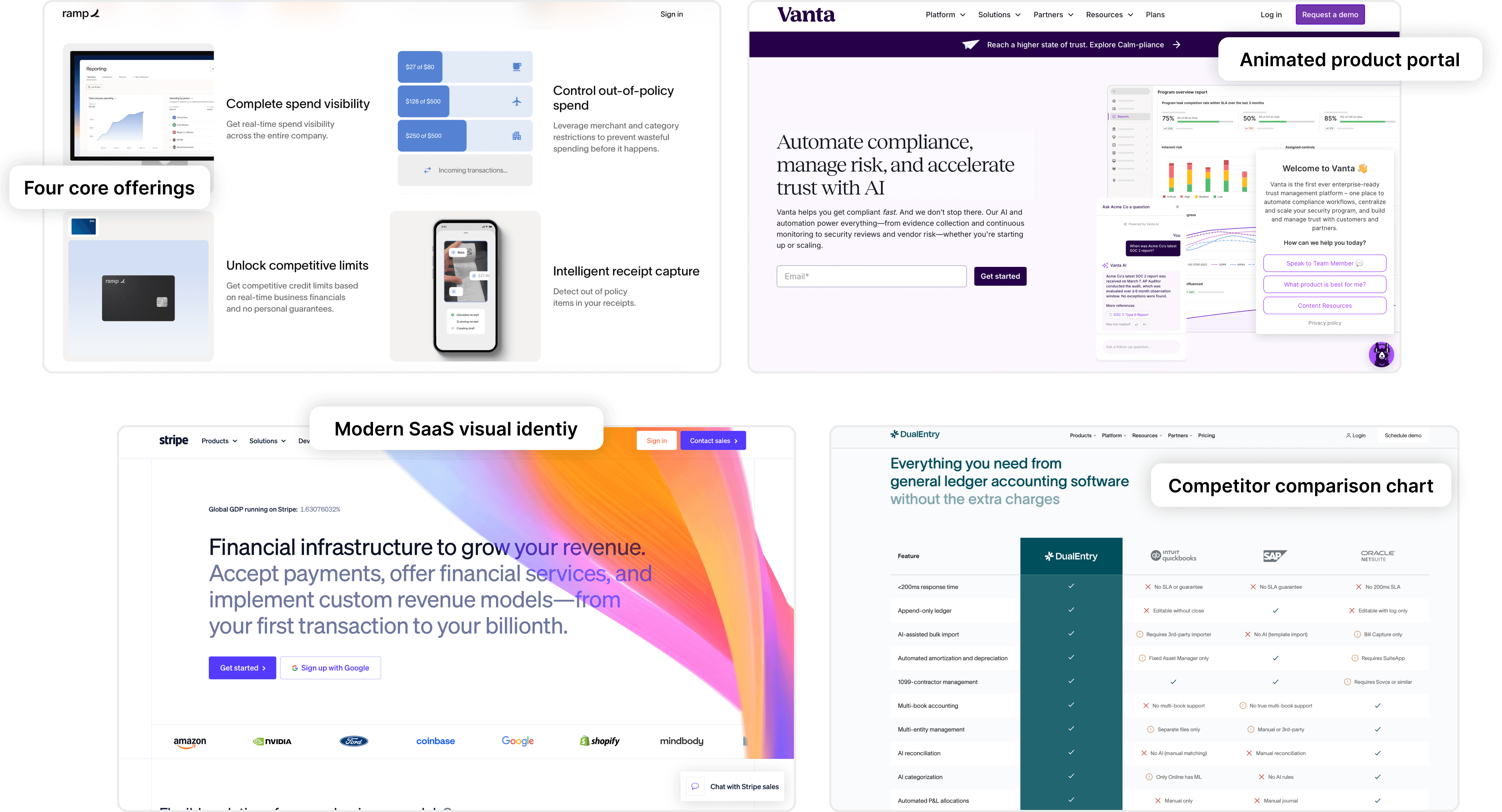 I refined the product section into four clear cards, each with UI previews to make the offering more tangible and scannable.