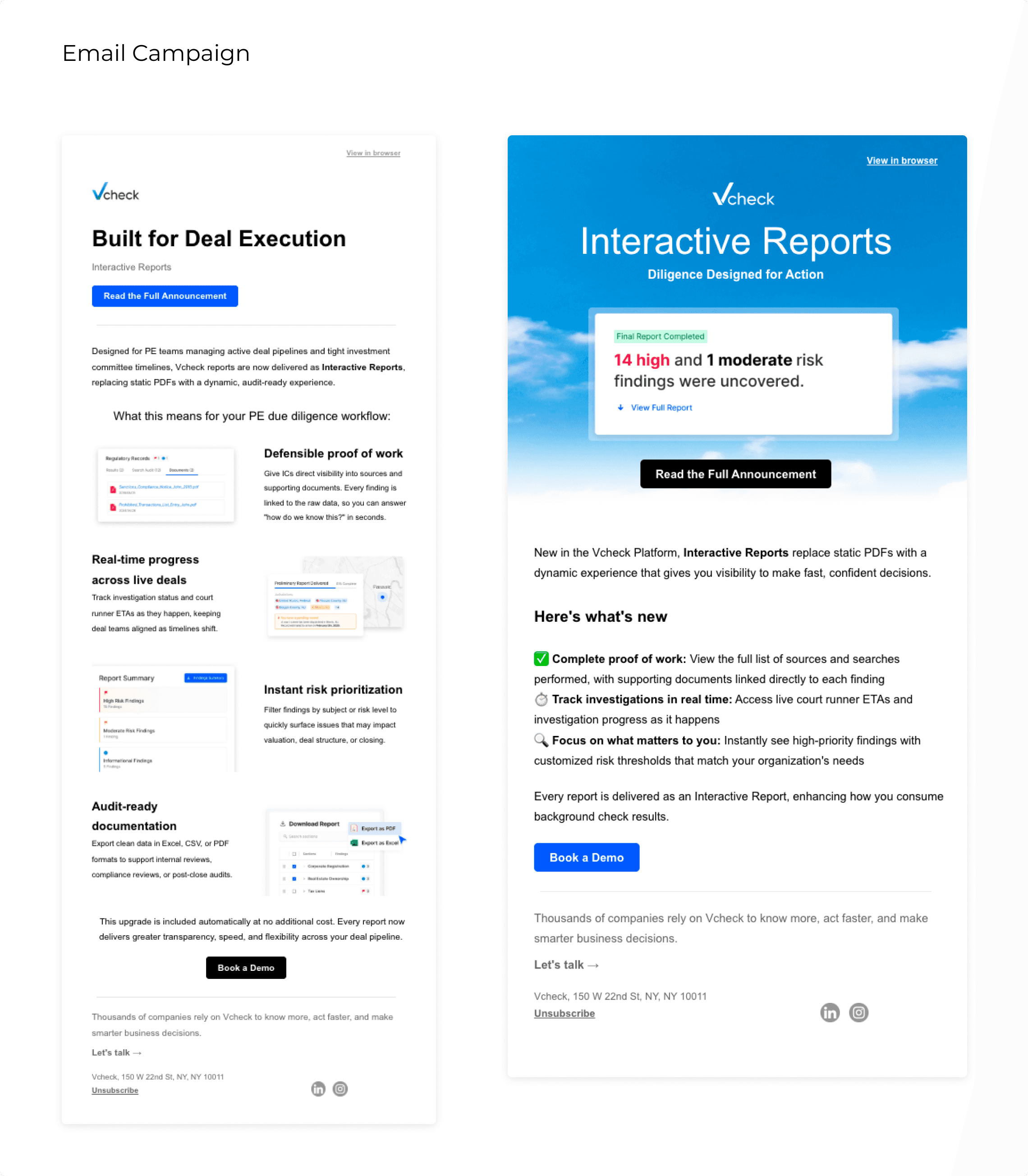 Interactive Reports was Vcheck’s largest product launch, turning static background reports into a real-time, interactive platform.